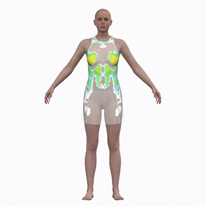 Layered semi transparent fabric and coloured pressure maps answer almost all questions about fabric in 3D view, and show how our fabric fits against the body with purpose of use defined.